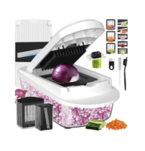 I’m obsessed with this little gadget. With eight blades ready to go, it dices, slices, and chops everything in minutes— basically my shortcut to feeling like a top chef.