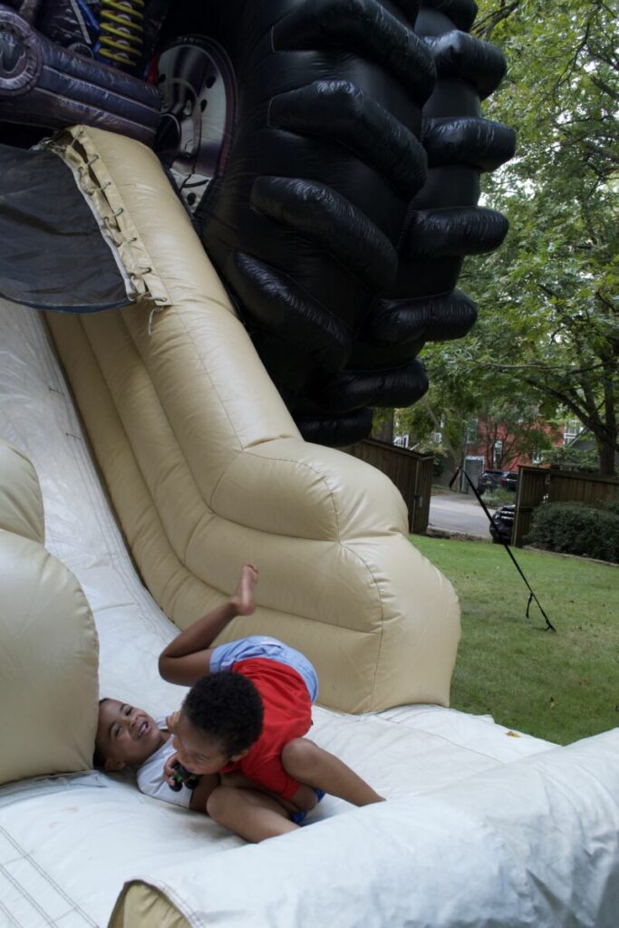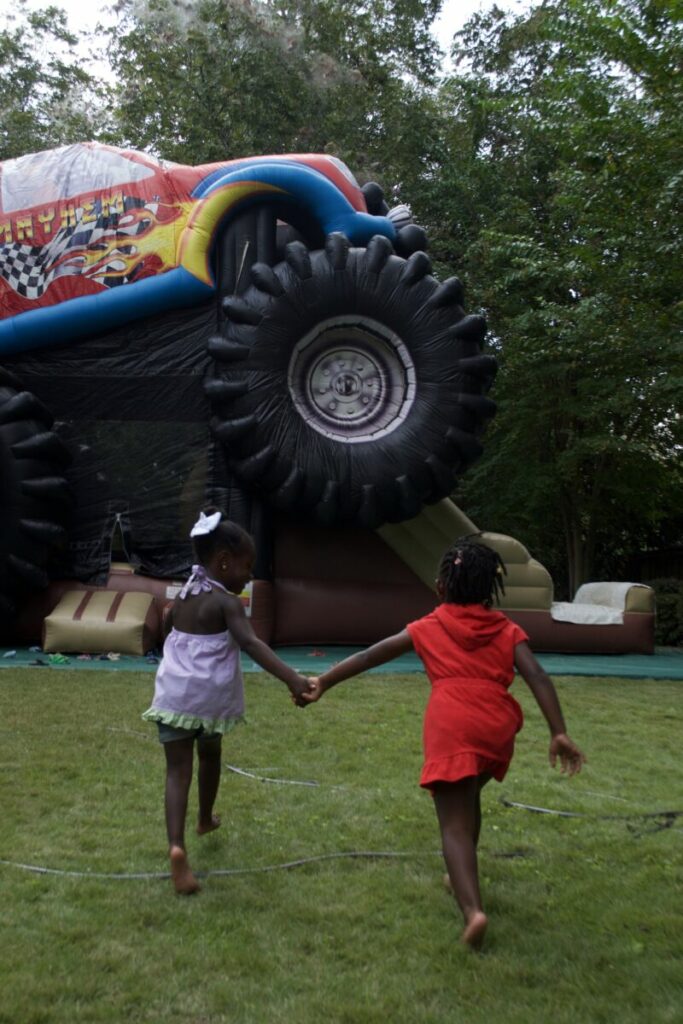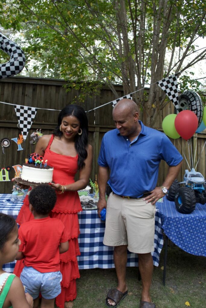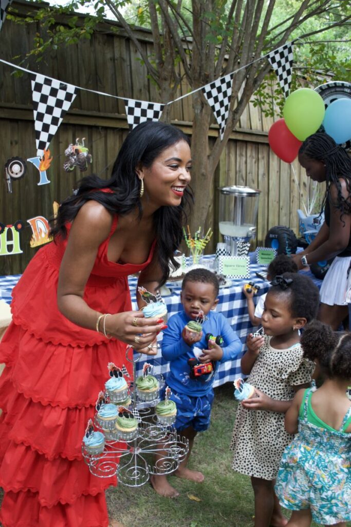 To be honest, she didn’t have a ton of time to prepare. Summer went by fast and then so did September. So, a lot of the decor was just Amazon finds, French linens, and her trusty Mackenzie Childs collection— who’s checkered pattern was almost too perfect for the race theme! But she did have a family friend build a race track for the kids to use with the toy trucks, and then there was the giant inflatable monster truck jump castle that everyone fully thought was gonna be a waterslide (but that’s another story for another day) that kept the kids entertained …until the final summer storm of the season came through!!!