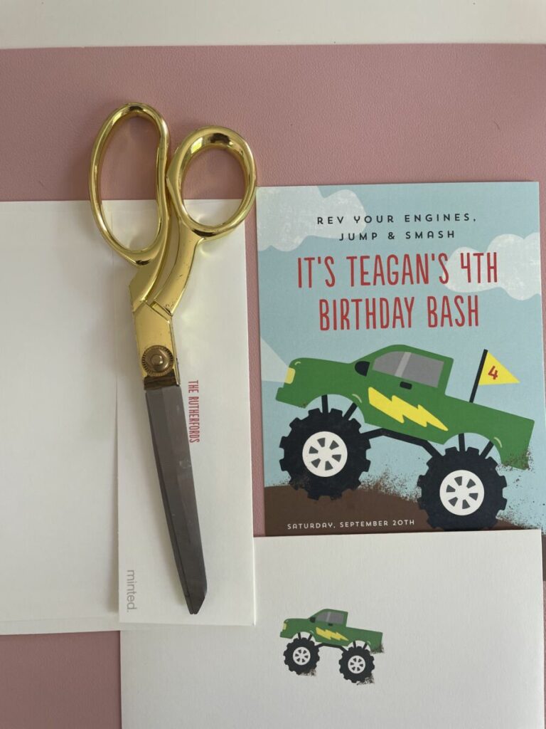 All good parties start with the invite so, she turned to Minted!!! She was adamant on mailing out a few to his friends because his baby book goes up until age 5 so she wants to collect them all until then! But that’s how “Jump & Crash, Its Teagan’s 4th Birthday Bash” came about— she found the perfect template on Minted that she could easily edit. This made the invites feel completely custom.. and were the foundation of the entire party!