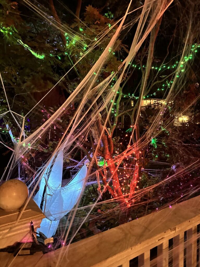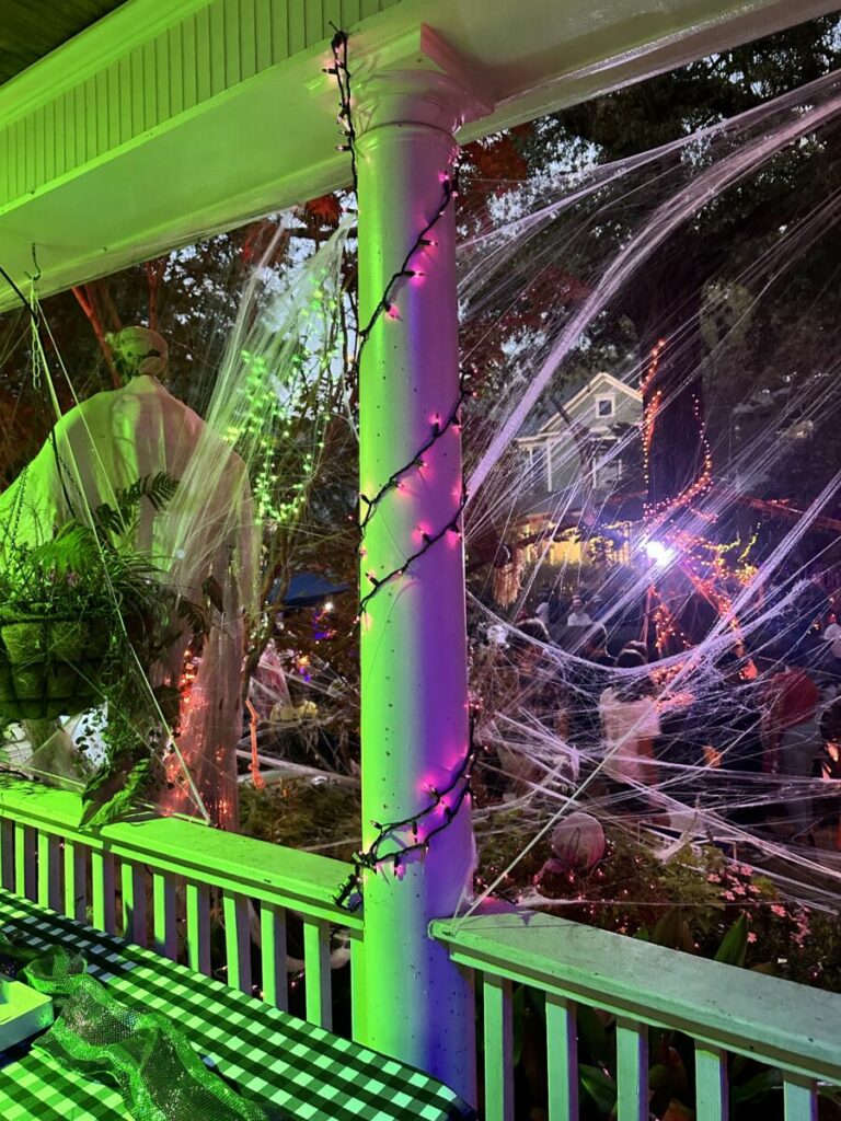 You could ditch the clean aesthetic all together and lean into the gory side of the season and litter your lawn with D-list movie props! This is your chance to not care about what anyone thinks! Grab scrap metal, caution tape, and as many skeletons as you can find. Cover everything faux cobwebs and make sure there’s spooky lighting in every corner. You can be like The Rutherford’s and include lifesize villains and even a hearse in their front yard, but just know that your house will be the talk of the neighborhood and there will be a continuous line of trick-or-treaters waiting for a scare.. and a piece of candy!