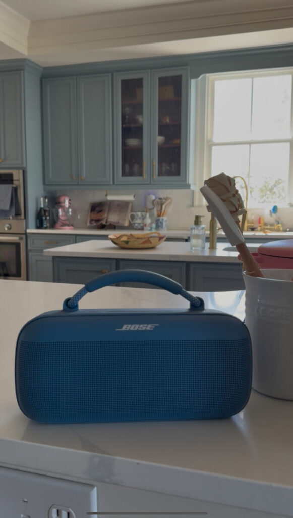 We used this Bose portable speaker that has a very long battery life on hand that we moved from room to room. Not only does it set the mood while vibing around the house or even outdoors… it acted as a noise suppressant when the kids were asleep upstairs and we were downstairs playing games and drinking wine!!!