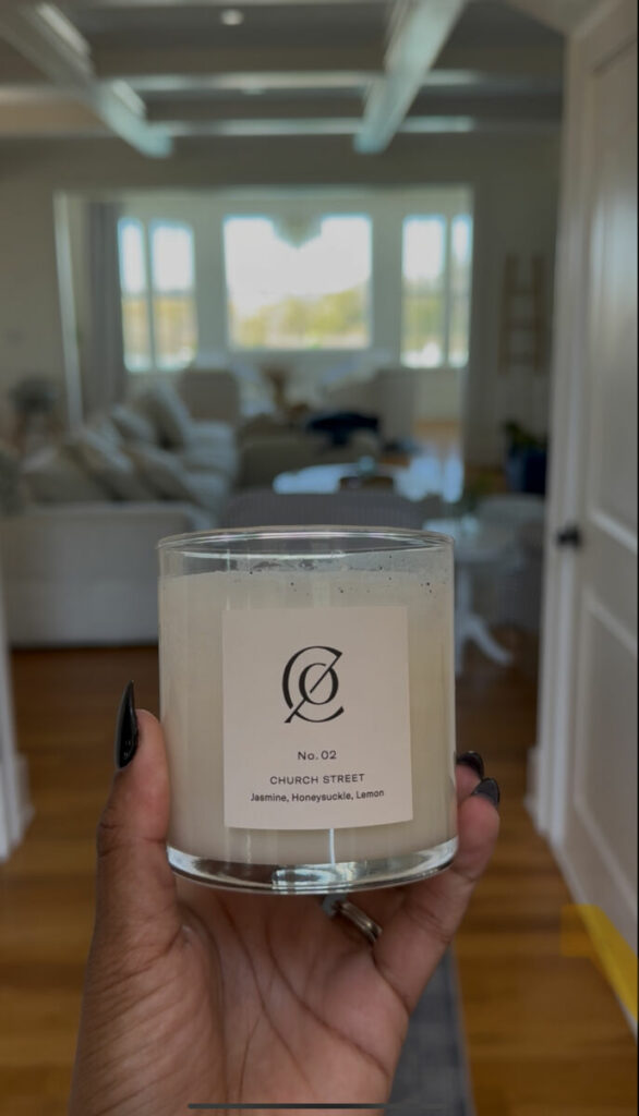 With that many people (but especially with that many kids) there are bound to be foreign smells throughout the weekend. So to keep things feeling fresh and cozy, I keep a candle lit in high-traffic spots (like the entry way). Just ensure it’s out of reach of children and (hopefully) out of the path of flying toys. The brand I find myself using the most in this area is by Charleston Candle Co. That weekend I burned this scent!!