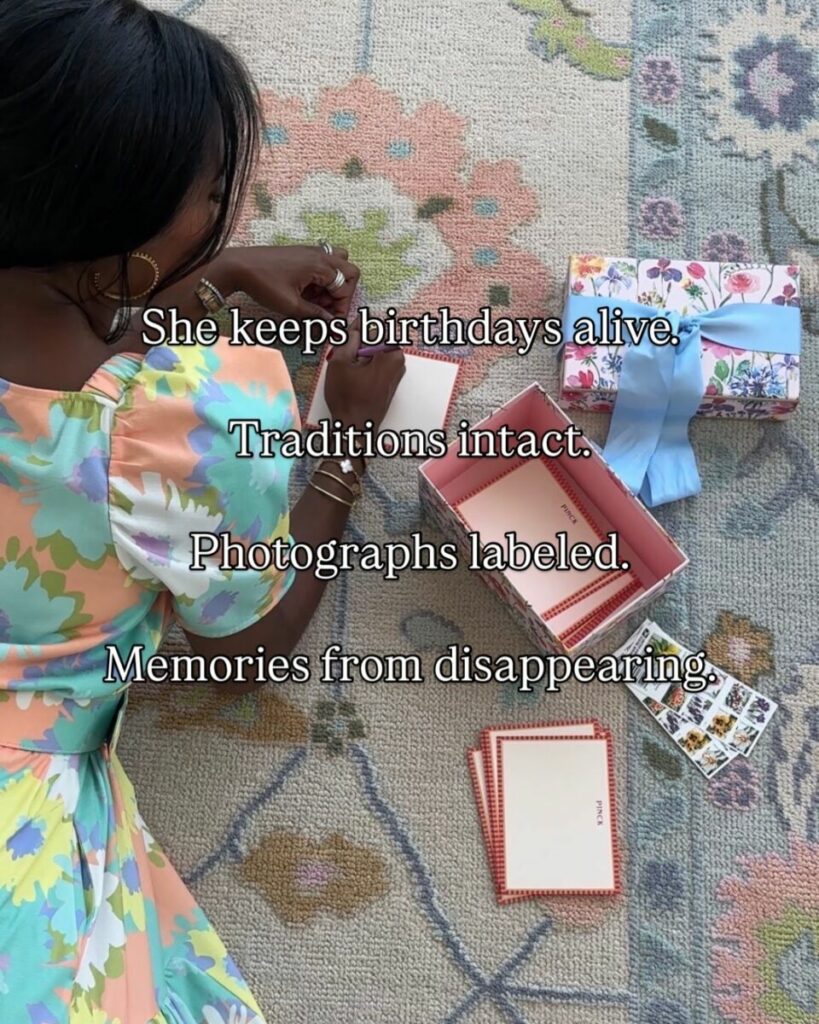 She protects and preserves stories, traditions, and memories through togetherness.